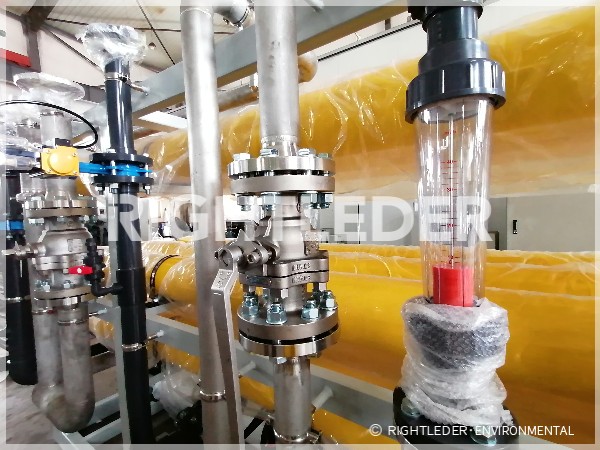 針對電廠高鹽廢水水量大、鹽含量高、ρ( COD)高、硬度高、硅含量較高等特點,萊特萊德采用“來水+板式換熱器+自清洗過濾器+超濾系統+極限分離系統+陰陽離子交換器+混床系統+除鹽水箱”的系統處理工藝,經過換熱器升溫的原水進入自清洗過濾器及超濾裝置,除去水中大顆粒雜質,如懸浮物、膠體、大分子有機物、微生物及細菌等,保證出水控制SDI15在3以內。并提高且恒定原水水溫,保護后繼反滲透系統的穩定運行,系統整體脫鹽率和回收率均可達到在70%~80%。
